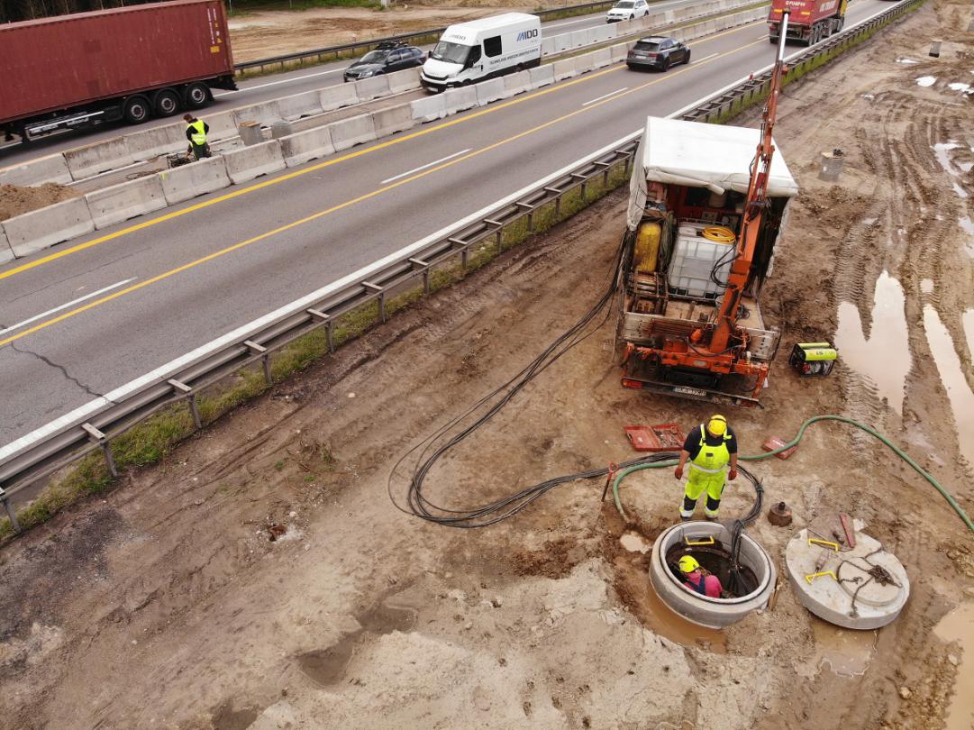 Die mit dem Projekt verbundene Baustelle befand sich, wie bereits erwähnt, im Bereich der belebten 3-City-Schnellstrasse. Die Verwendung einer anderen Technologie, die diesen Kommunikationsfluss einschränkt oder ausschließt, war keine Option. Die Gravitations Bohrtechnologie wurde genau so entwickelt, dass an solchen und ähnlichen Orten Installationen ohne Graben durchgeführt werden können, ohne die vorhandene Infrastruktur zu beeinträchtigen und ohne den Verkehr blockieren zu müssen.