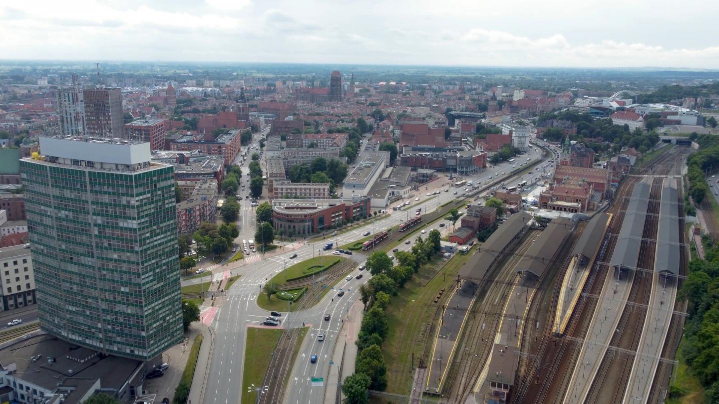 In addition, the contracting authority, for obvious reasons, did not allow the renovation method in the form of cracking. First of all, the damaged pipeline had to be strengthened by filling it with injection grout before its reconstruction. With the existing sewage pipe so severely damaged, the lack of this operation, combined with the additional impact of vibrations during the cracking renovation, guaranteed a construction disaster with its consequences in the form of losses counted in millions of euros. The pre-construction CCTV inspection showed us that the existing sewer is so damaged, which means that the ground around it is very unstable, full of voids and loose fractions. Rehabilitation using Cracking or a similar trenchless method would result in inevitable vibration-induced collapse of both the sewer itself and the ground around and above it. As a result, the main road in Gdańsk and the adjacent tram track, which is an important communication link between the city center and its western part, would collapse. In the case of renovation of such damaged networks, our technology includes filling with injection grout in the first process in order to obtain a stable space in the place of the damaged sewage pipe. In the next stages, corrective actions are taken. Another significant problem was the work site itself, the construction site. Podwale Grodzkie Street, and in particular its part adjacent to the Gdańsk Główny Railway Station, is one of the main transport hubs. The starting well was located on the extreme left lane of the three-lane Podwale Grodzkie street.