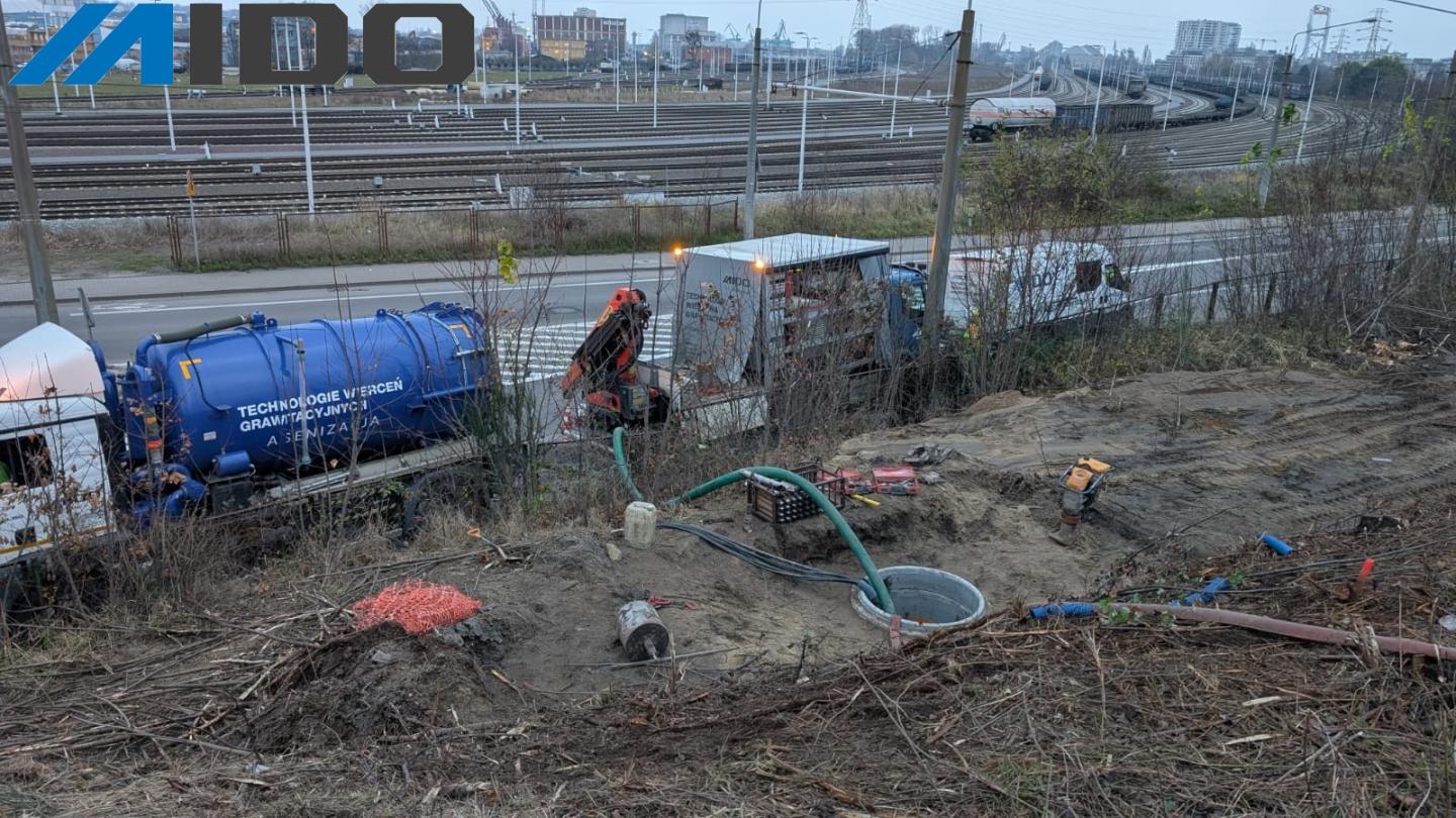 W Gdyni, na terenie stacji SKM Stocznia, wykonaliśmy właśnie zaawansowaną budowę odcinka sieci kanalizacji deszczowej w celu odwodnienia torowiska. Zadanie, które początkowo wydawało się rutynowe, okazało się pełne wyzwań, z którymi tylko technologia wiercenia grawitacyjnego i doświadczeni operatorzy mogli sobie poradzić. W tym przypadku zastosowanie tradycyjnych metod budowlanych, takich jak wykopy, nie tylko by opóźniło realizację, ale mogło również wymagać zamknięcia torowiska nawet na kilka tygodni, co było absolutnie nieakceptowalne.